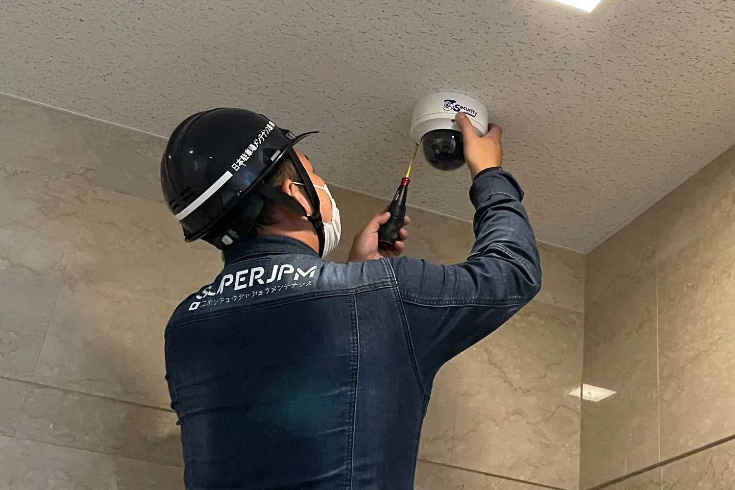 専門スタッフがお伺いし、設置場所や環境を確認します。主な内容としましては、カメラの設置位置や配線ルートを調査や必要な台数や機能、カメラタイプの確認を行います。 -